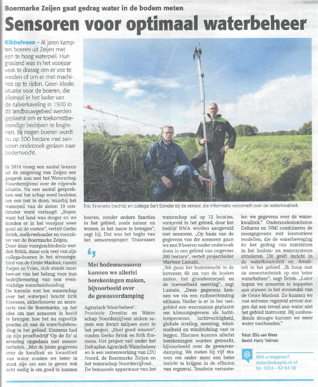 - Slimme sensoren plannen beregening - Dagblad van het Noorden - september 2019
